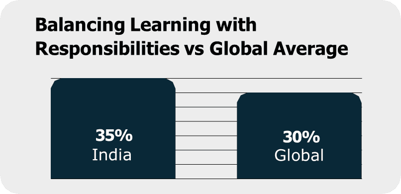 With over 1,700 responses from India alone, the study showcases a workforce committed to growth: 81% of Indian professionals reported advancing their skills in the last 12 months, ahead of the global average of 61%.