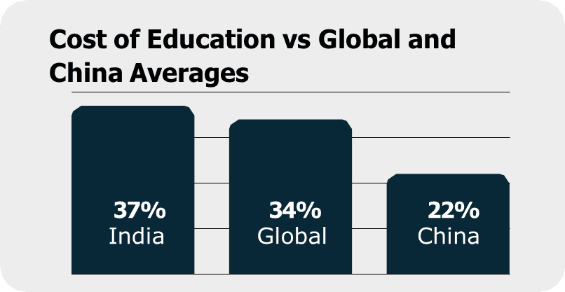 Spending on upskilling in India is estimated to be 1.5x higher than the global average. Along with India, countries like China, Brazil and South Africa also exceed the global average in boosting educational investments.